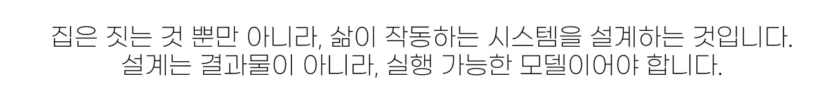 단독주택 집짓기는 건축 정보를 모으고, 예쁜 설계를 고르고, 시공사를 선정하는 ‘절차’의 문제가 아니다. 본질은 한 가지다. 삶의 목적을 공간 언어로 번역하고, 그 번역이 예산·공정·현장 디테일까지 일관되게 구현되도록 관리하는 ‘결정–실행 시스템’의 체계성의 문제이다.
