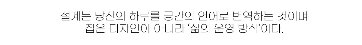 고객의 요구를 단순 스펙이 아니라 ‘하루의 장면(루틴/가족/손님/업무/휴식)’으로 해석하고, 그 장면이 배치·동선·빛·재료·수납·설비·운영 방식으로 연결되도록 설계한다. 그래서 공간이 ‘그럴듯한 디자인’이 아니라 ‘내 방식대로 살고, 내 방식대로 운영되는 구조’가 된다.