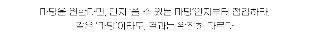 그 결과는 마당일 수도 있고, 중정(Courtyard)일 수도 있으며, 정원(Garden)일 수도 있다. 중요한 것은 형태의 이름이 아니라, 그 공간이 삶을 제대로 받쳐주느냐다.