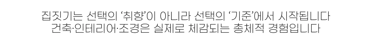 필요한 것은 ‘멋진 사례’의 나열이 아니라, 사례를 통해 판단 구조를 학습하는 과정이다. 같은 트렌드가 적용된 집이라도 어떤 집은 안정적이고, 어떤 집은 억지스럽다. 차이는 결국 “조건과 결정의 정합성”에서 난다. 대지의 방향과 시선 조건, 가족의 생활 방식, 예산과 일정의 제약 속에서 어떤 요소를 우선했고 무엇을 조정했는지에 따라 결과가 달라진다. 따라서 트렌드를 이해한다는 것은 이미지가 아니라, 그 이미지가 성립하는 조건과 선택을 이해하는 것이다.