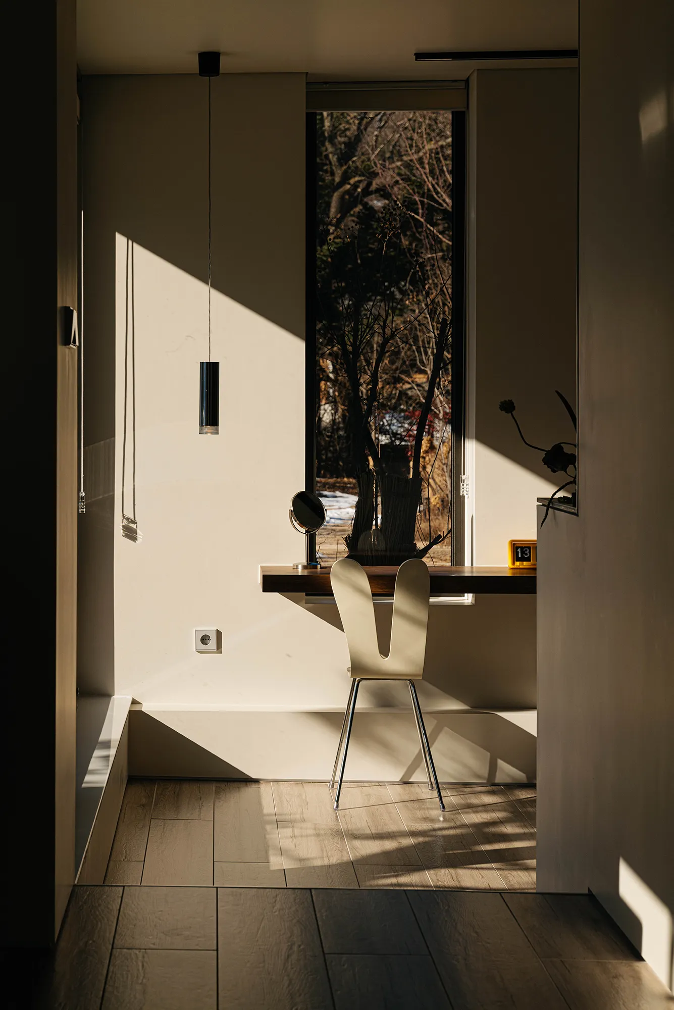 거실과 정원, 식사실과 마당 등으로 이어지는 공간 배치는 거주자들에게 개방감을 주고, 생활 속에서 자연을 만끽하며, 유용한 행위가 가능합니다.