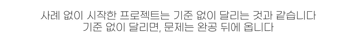 사례 없이 시작한 프로젝트는 빨라 보이지만, 실제로는 기준 없이 달리는 상태에 가깝다. 결정이 쌓일수록 작은 선택이 큰 비용과 불편으로 돌아오고, 문제는 대개 완공 이후에 드러난다. 사례를 건너뛴다는 것은 결국 검증을 생략한 채 설계를 진행하는 것이다.