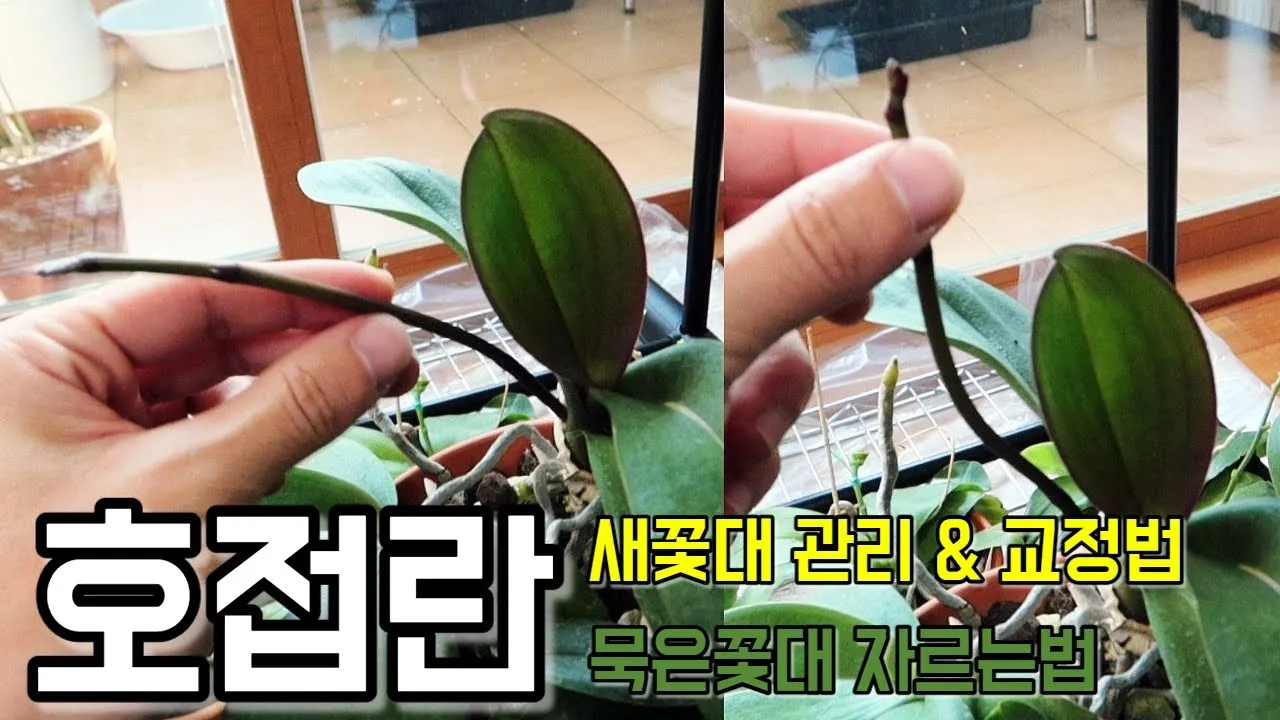 호접란 꽃대 관리방법!! 새꽃대 교정방법 & 묵은 꽃대 자르는법!! 묵은 꽃대에서 또 꽃을?? - YouTube - 식물집사독일카씨